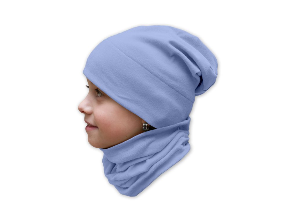 Dětská prodloužená čepice modrá pomněnková