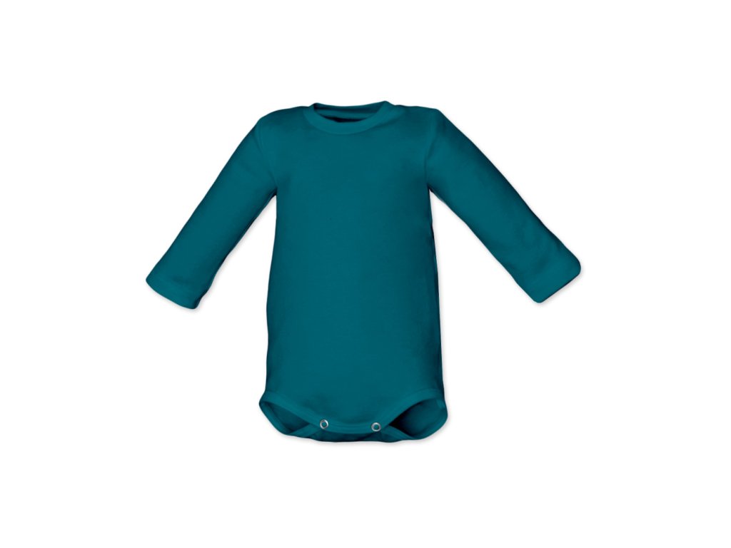 vyrobené z kvalitního českého úpletu. Je pružné, měkké, prodyšné a šetrné k citlivé dětské pokožce. Bodyčko má zakončení u krku do pružného lemu, které umožňuje snadné přetahování přes hlavu. Praktické zapínání v rozkroku na dva patenty usnadňuje přebalování a dlouhé rukávy chrání ruce před chladem.